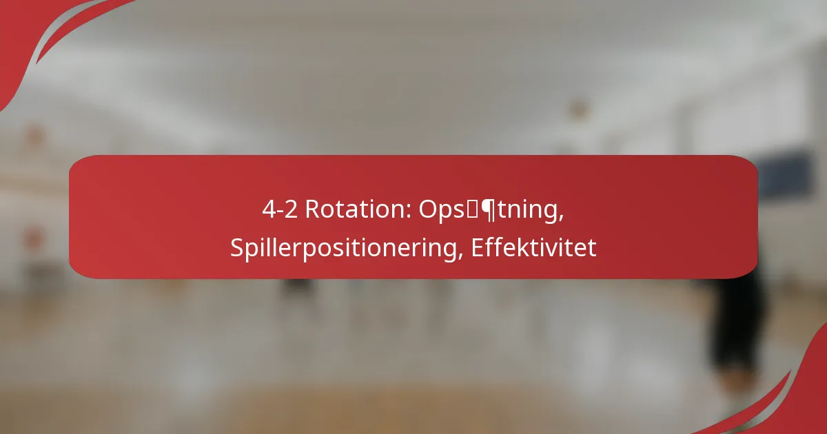 4-2 rotation er en taktisk formation, der lægger vægt på en afbalanceret tilgang mellem forsvar og angreb. Optimale spillerpositioner i denne opsætning involverer strategiske placeringer af forsvarsspillere, midtbanespillere og angrebsspillere for at sikre effektiv dækning og flydende overgange under spillet.