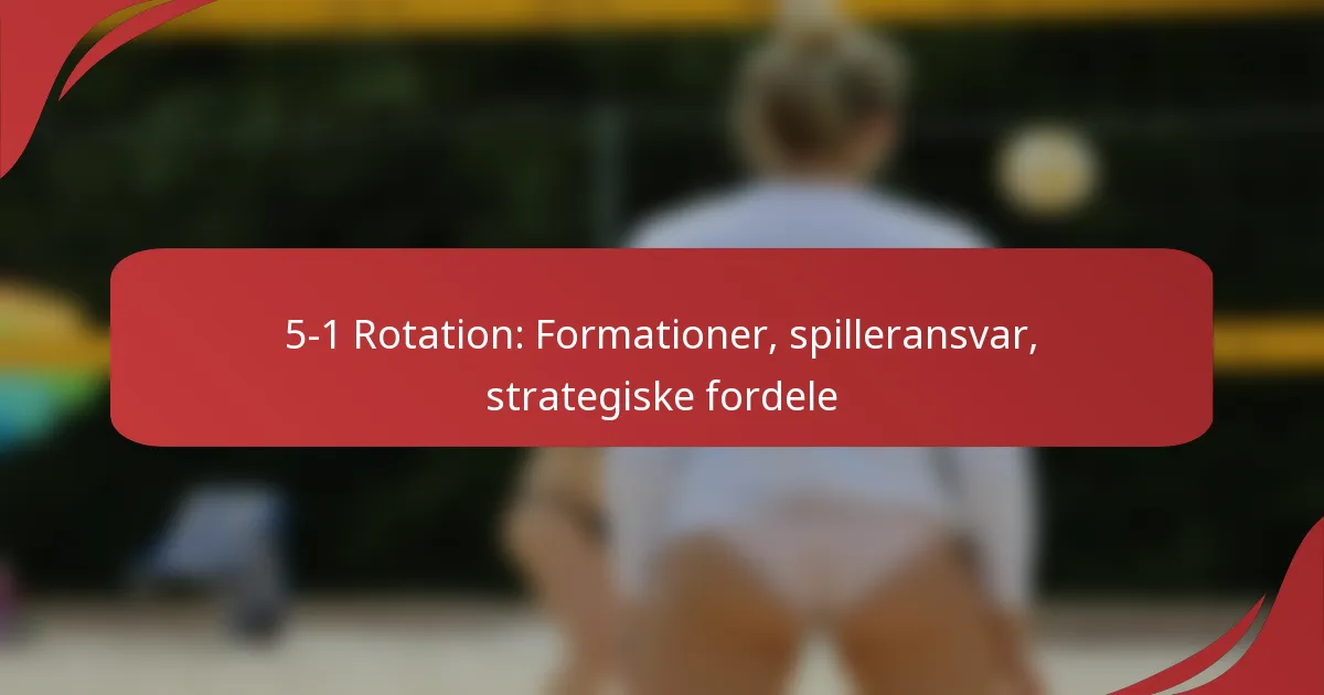 5-1 rotation er en strategisk formation, der ofte anvendes i volleyball, hvor fem spillere danner en defensiv linje, og én spiller fungerer som setter. For at implementere denne rotation effektivt skal holdene forstå spillerroller, opretholde stærk kommunikation og tilpasse strategier under gameplay.