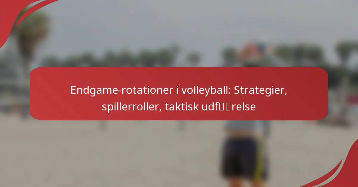 Endgame-rotationer i volleyball er essentielle for at optimere holdets præstation i de afgørende sidste øjeblikke af en kamp. Ved strategisk at placere spillerne og klart definere deres roller kan holdene udnytte deres styrker og modvirke svagheder, hvilket har en betydelig indvirkning på kampens udfald. Effektiv udførelse af disse rotationer kræver problemfri kommunikation og tilpasning til modstanderens taktik.